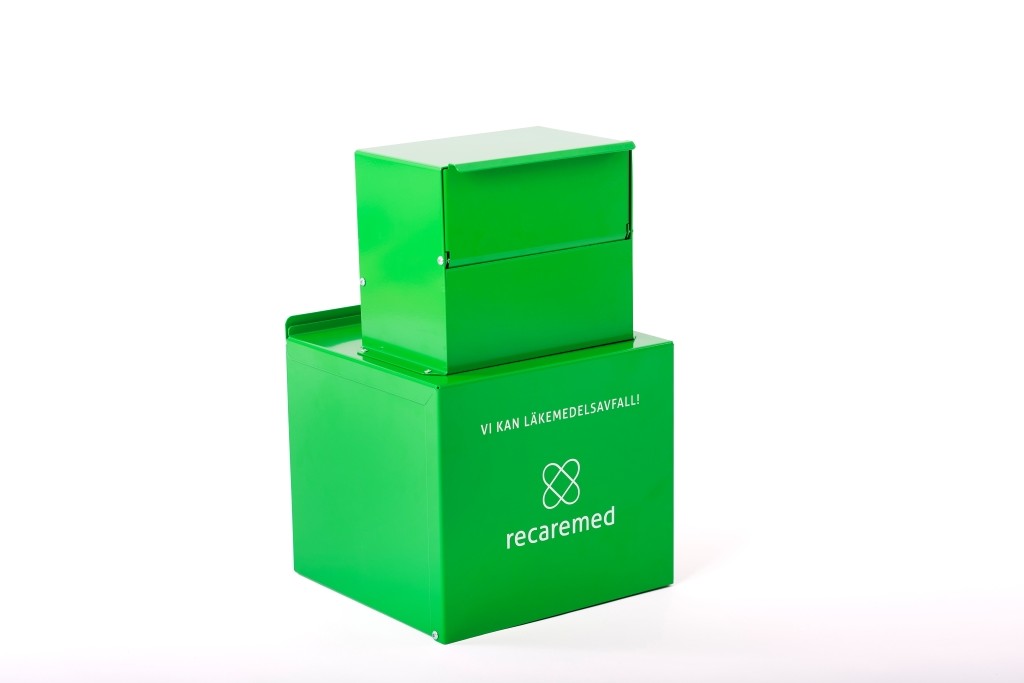 - Låsbart plåtskåp med inkast till Retursystemet Recarebox för kasserade läkemedel