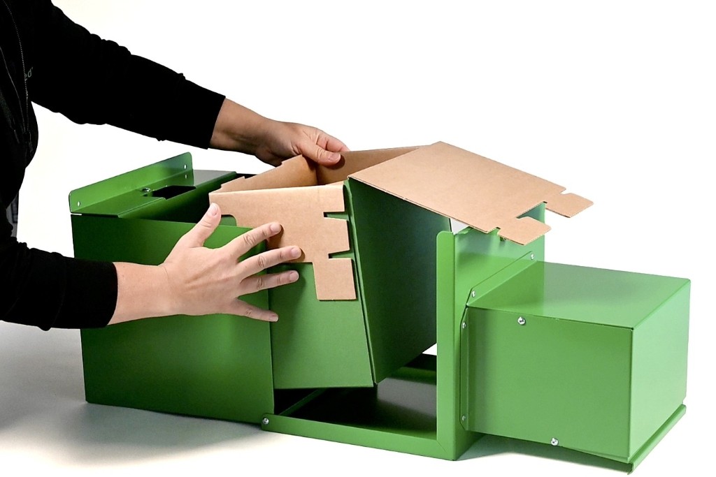 - Recareboxen placeras som en insats i det låsbara plåthöljet
